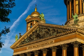 Экскурсия в Исаакиевский собор. «Исаакий» предстанет перед вами как уникальное произведение русского искусства середины XIX века. Вы увидите великолепные стенные росписи и картины на холсте, выполненные известными русским художниками, и полюбуетесь мозаичными иконами, для создания которых использовали смальту более 12 000 цветов и оттенков. Вас поразит обилие различных пород камня (от гранита до малахита и бирюзы), которые пошли на отделку храма.
