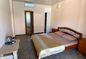 В номере: ТВ, ХОЛ, КОНД, санузел, двухспальная/раздельные кровати, прикроватные тумбы, журнальный столик, встроенный шкаф, чайник, набор посуды. Доп. место – раскладушка или диван-кровать.