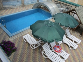WI-FI на территории, открытый бассейн с шезлонгами и зонтами, мангал, места отдыха, беседки, качели, неохраняемая парковка. Рядом есть охраняемая платная автостоянка.