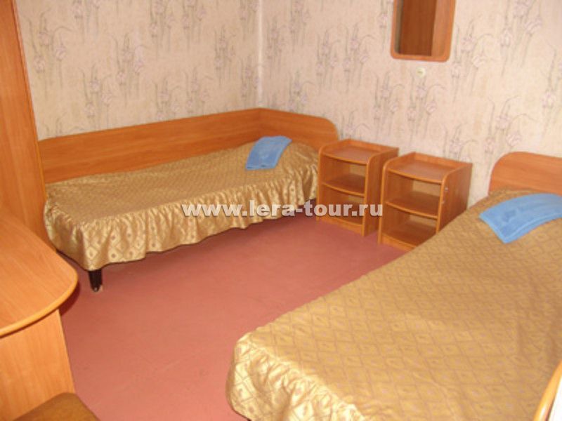 тумбочки, шкаф или вешалка, стол, стулья, зеркало. 300 м от пляжа. Допместо - не предусмотрено.