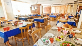 в 250 м от пансионата, собственный, мелко-галечный. На пляже работают спасательная и медицинская службы, есть пункт проката, кабинки для переодевания, туалет.