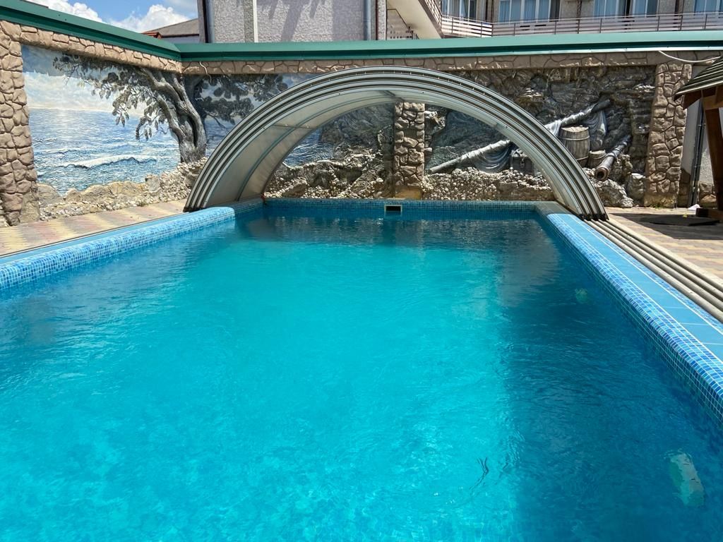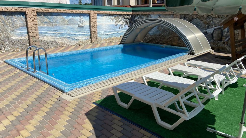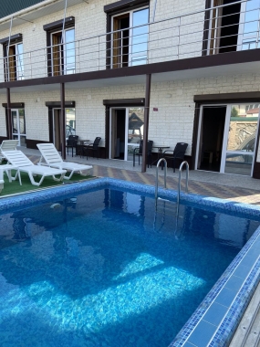 WI-FI на территории, открытый бассейн с шезлонгами и зонтами, мангал, места отдыха, беседки, качели, неохраняемая парковка. Рядом есть охраняемая платная автостоянка.